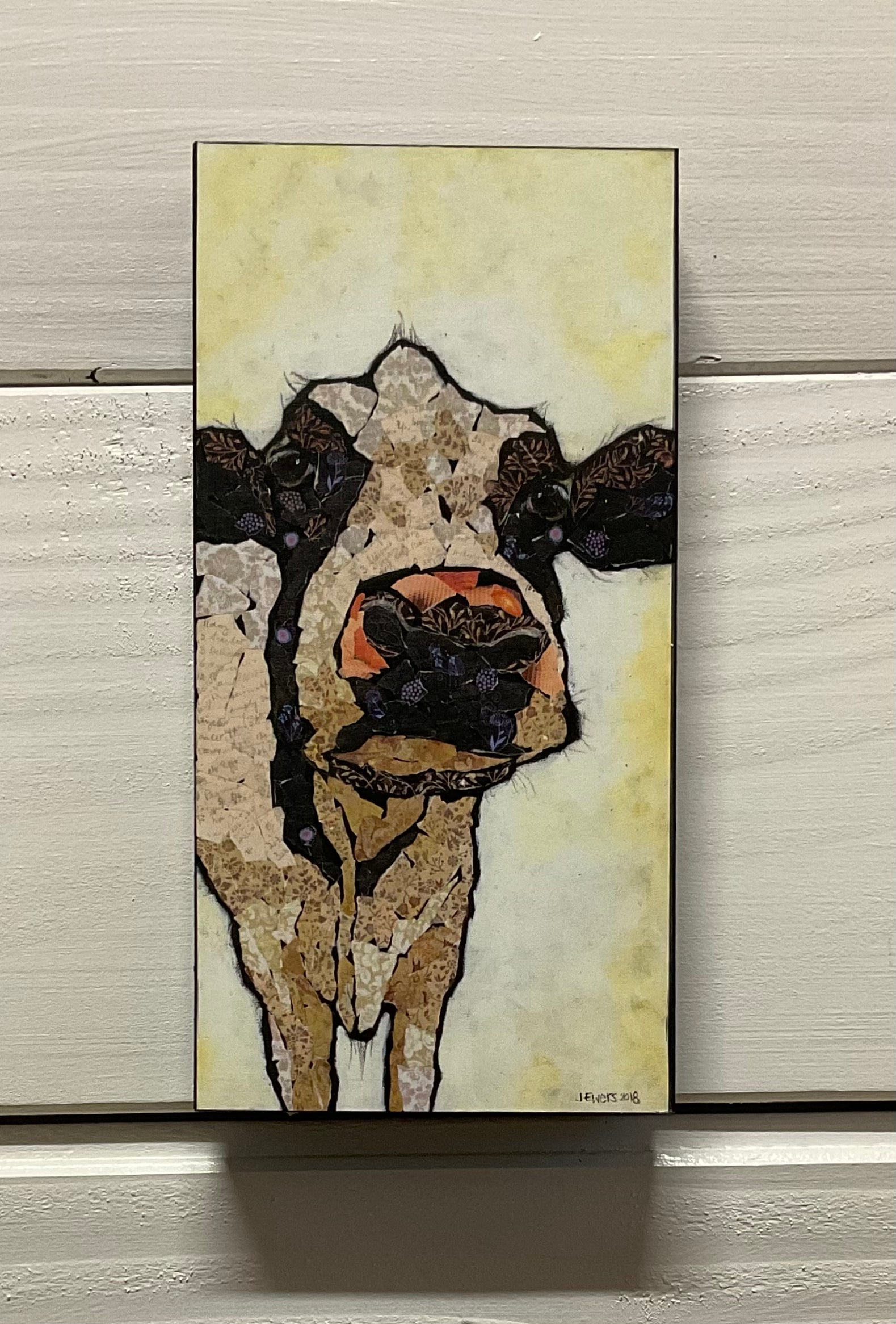 Print on wood, finished with Satin Varnish.