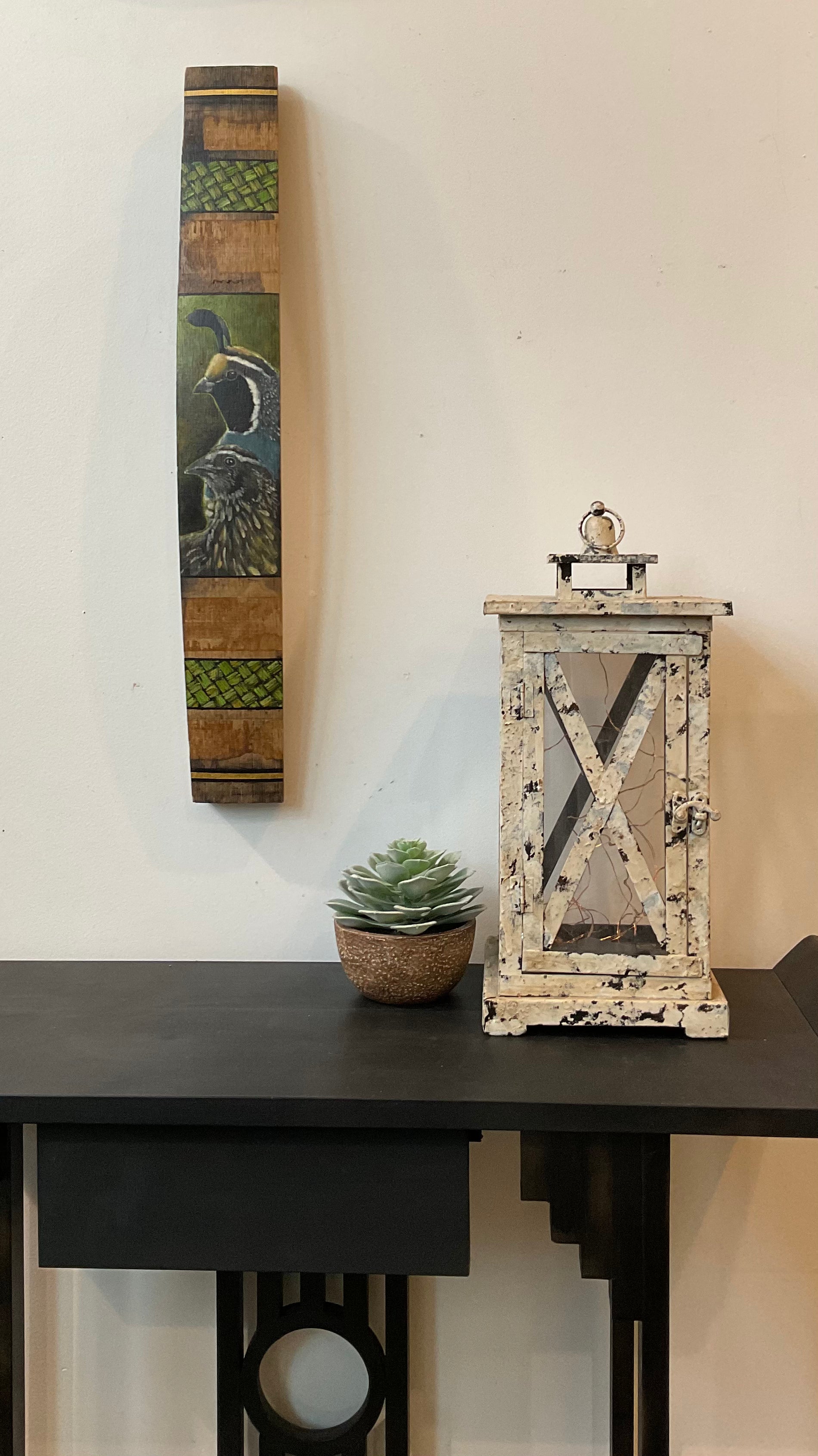 For this piece I have used Acrylic paint and finished with a satin varnish.