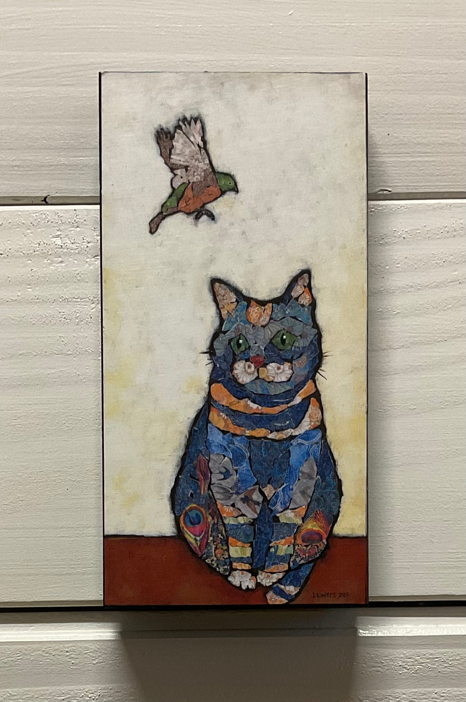 Print on wood, finished with Satin Varnish.